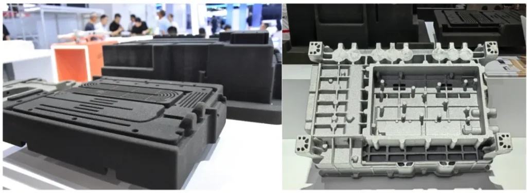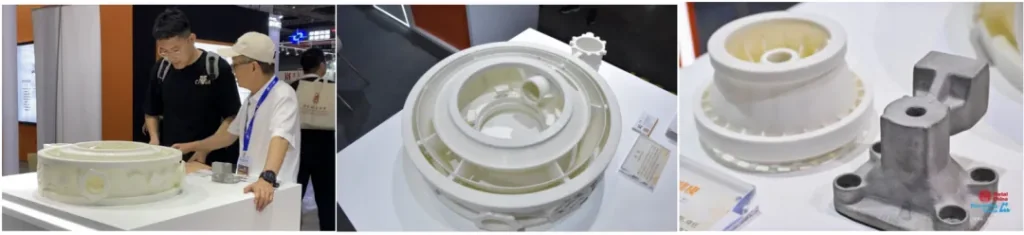 公司独有的“SLS覆膜砂成型工艺+3DP树脂砂成型工艺”组合砂型模具制造,可实现复杂结构零部件(大尺寸、薄壁、细小管路等)的高精高强度一体化铸造成型,该工艺已入选工信部增材制造典型应用场景。